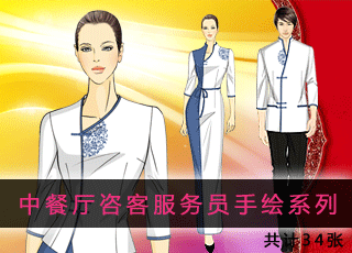 中餐廳咨客服務員手繪系列